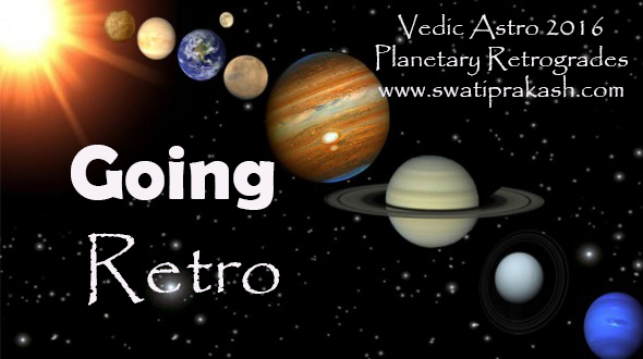 Retrograde planetary period symbolise energy going back into the past in the form of the retrograding planet that appears to move backwards as observed from earth. While Sun and Moon never go retrograde (they represent known and unknown self) Rahu and Ketu are always retrograde (they represent Karmic issues carried from past into the present until liberation). The rest of the planets seem to go retrograde from time to time, with Mercury being the most frequent (mercury represents thoughts of mind, travel and communication). This year 2016, there are significant retrogrades besides Mercury, especially Jupiter (represents spiritual wisdom and luck), Saturn (represents boundaries and rules) and Mars (represents initiatives, agression and actions).