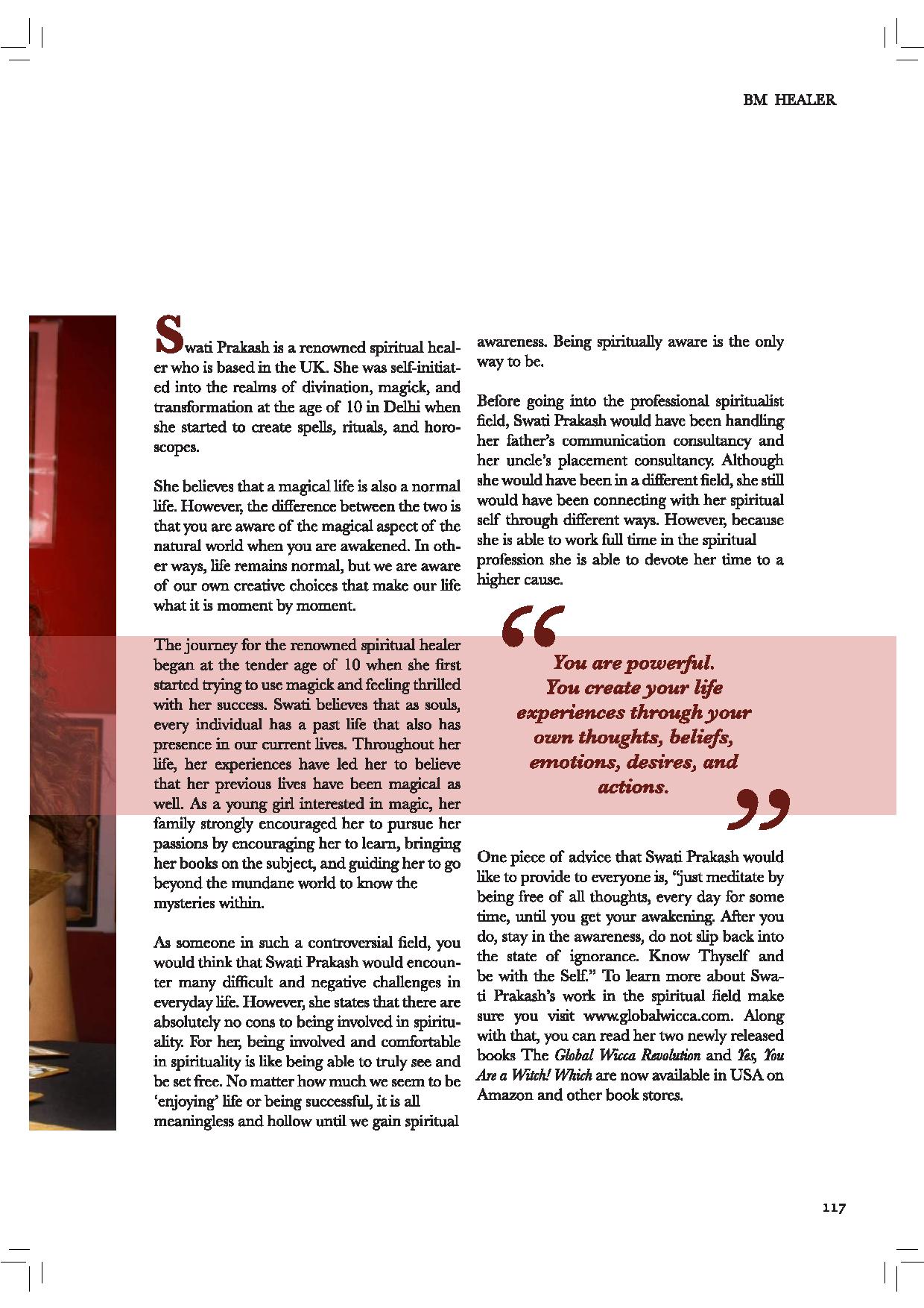 Swati Prakash is based in Central London and available for press interviews, TV appearences, columns, and talk shows on Tarot, Past Life Therapy, Veganism, Healing, Wicca and for conducting rituals, guided meditations, seminars, workshops or talks. Please download the Press Kit with profile and photos and contact Swati using the form below.