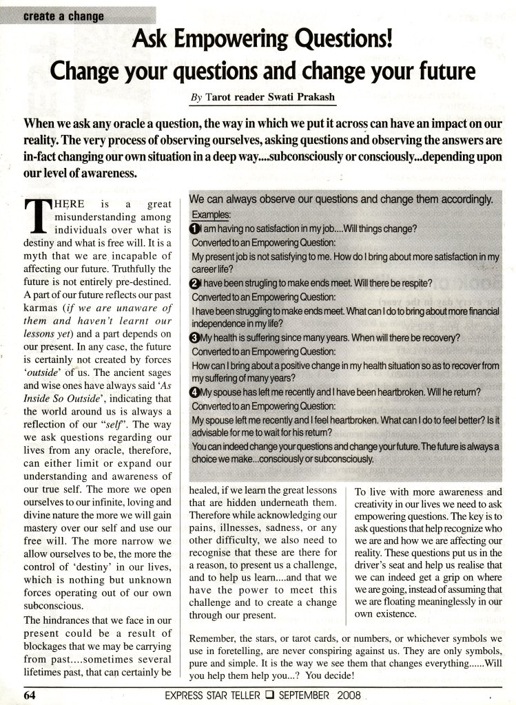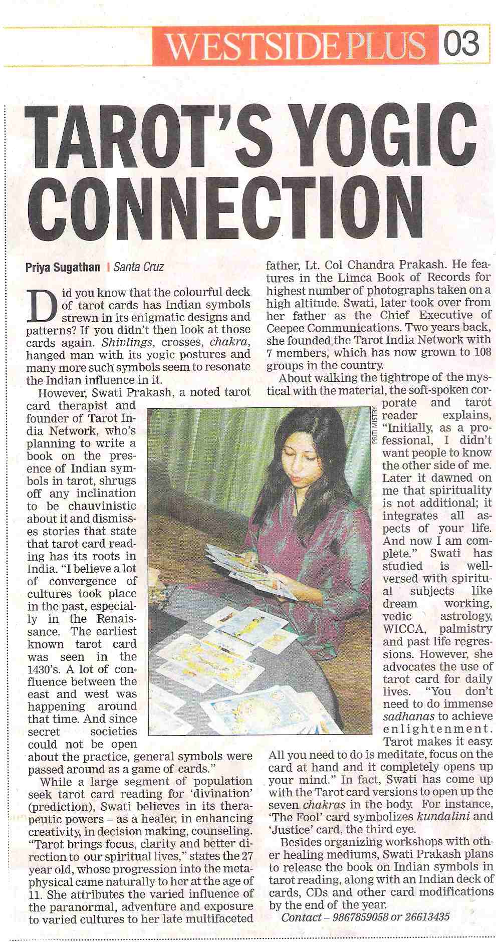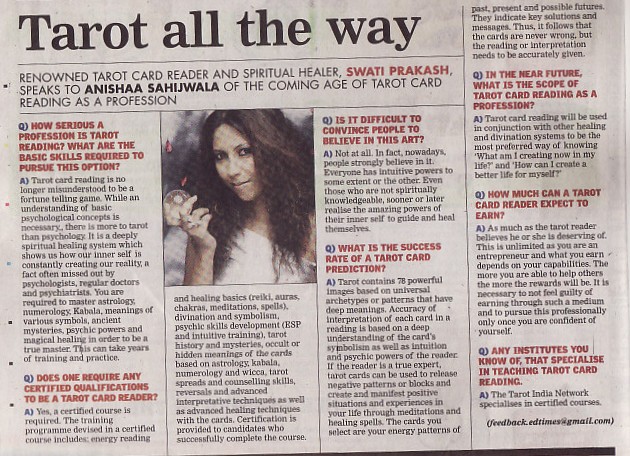 Exppress Starteller magazine interview of Swati Prakash introducing Tarot for the first time