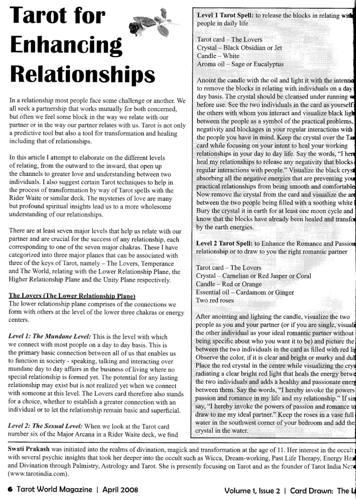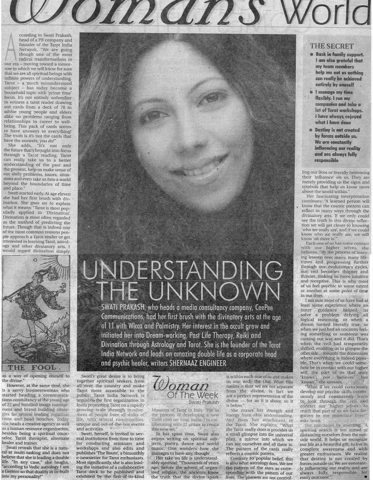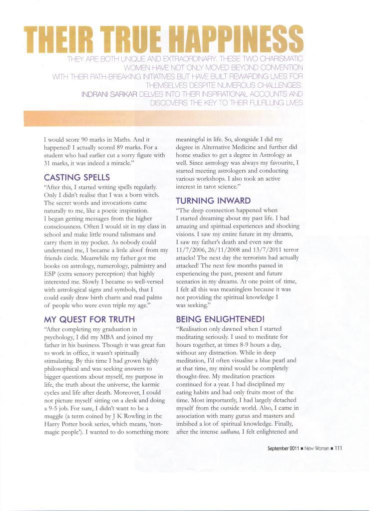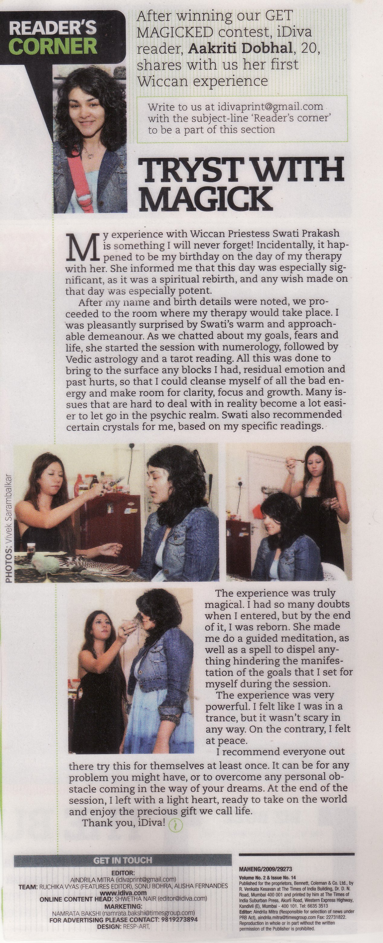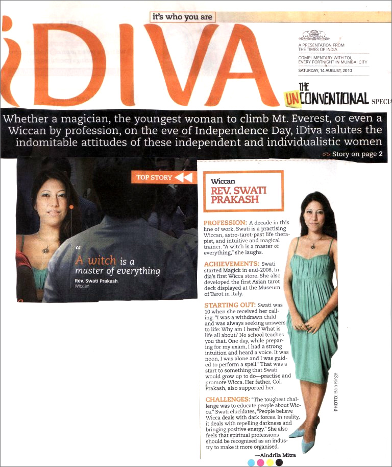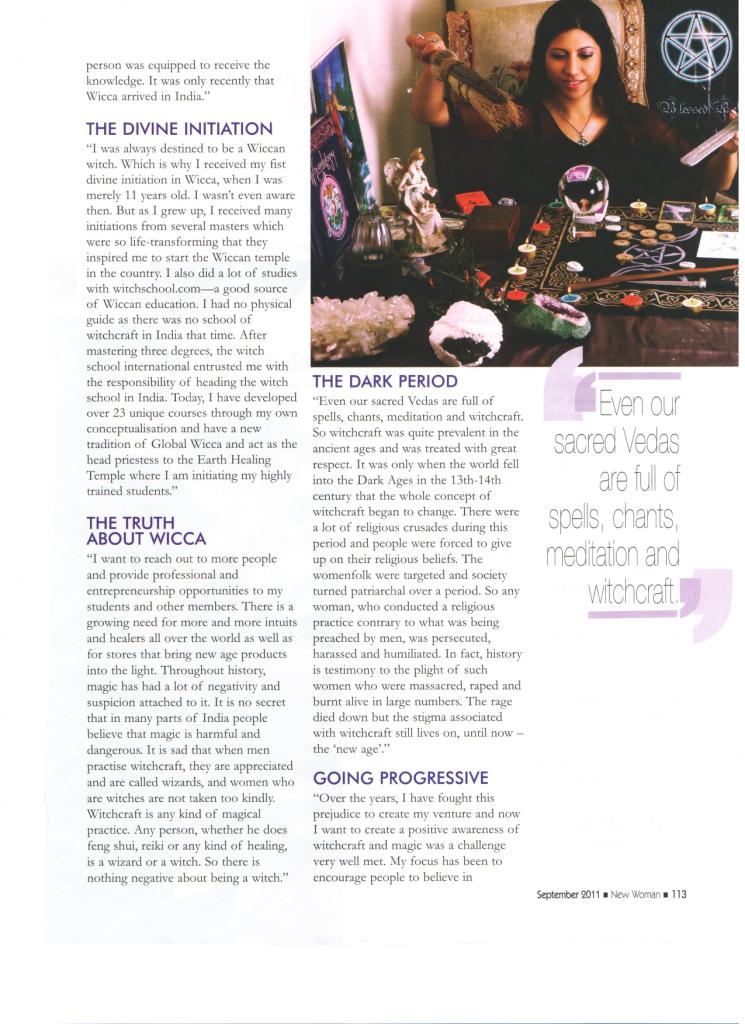 New Woman magazine interview of Swati Prakash, Tarot, Wicca