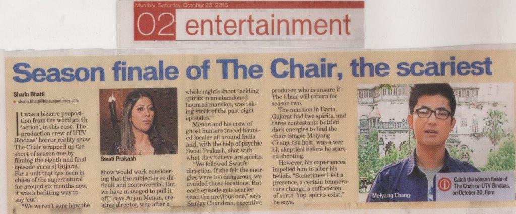 Hindustan Times story on Swati Prakash hosting The Chair, UTV